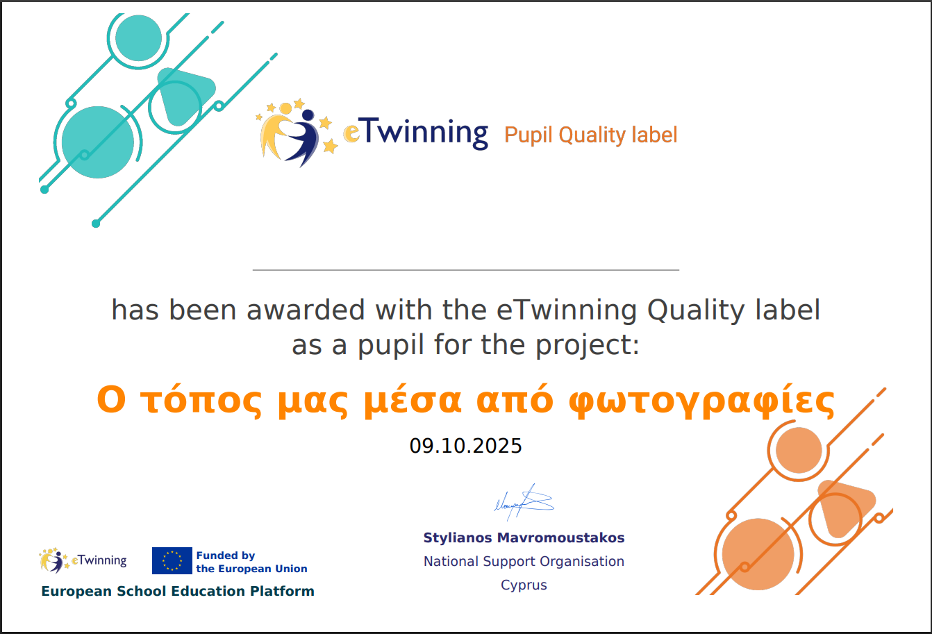 (Πιστοποιητικό Συμμετοχής του σχολείου και των μαθητών μας τη σχολική χρονιά 2024-2025)
