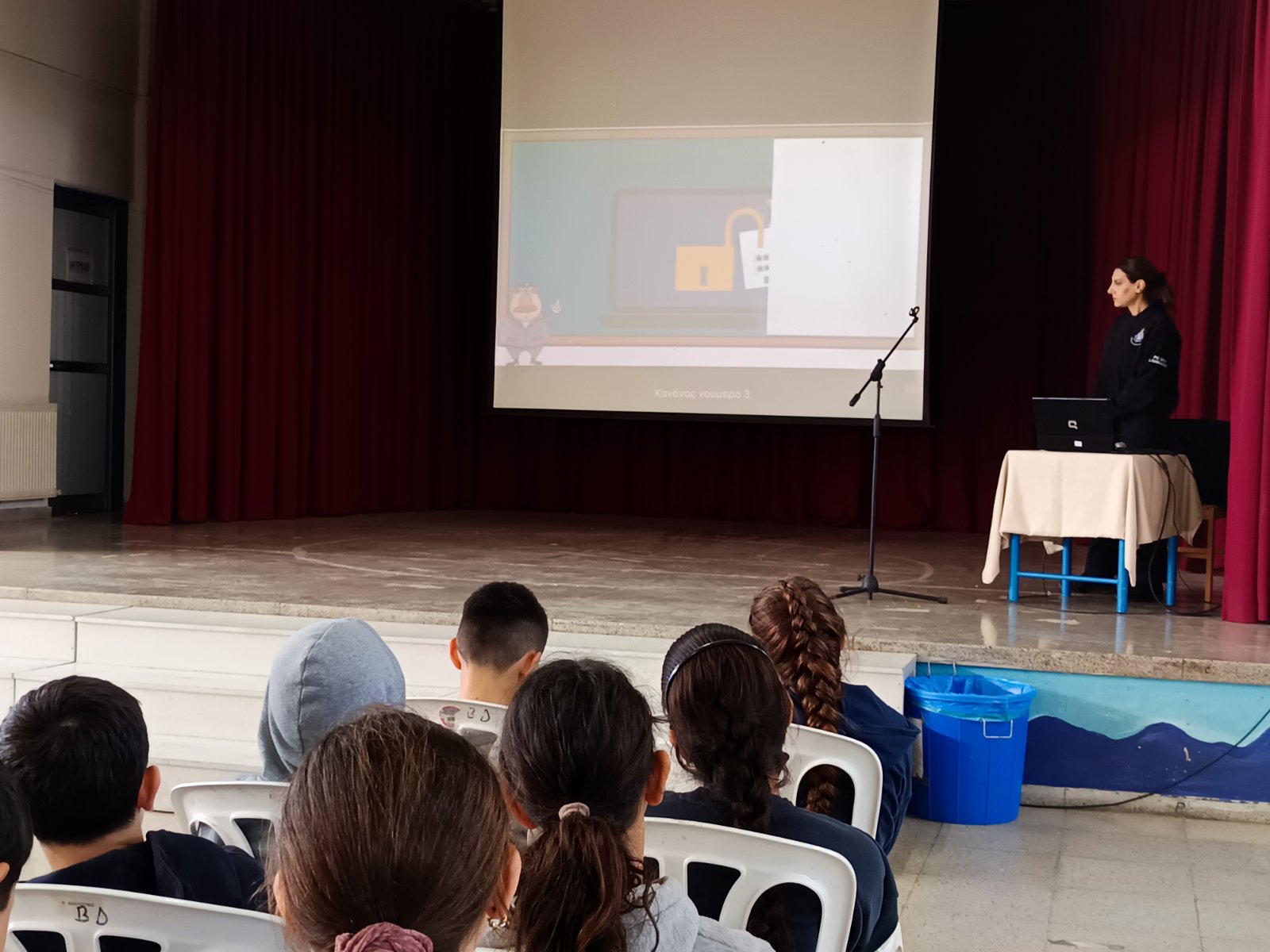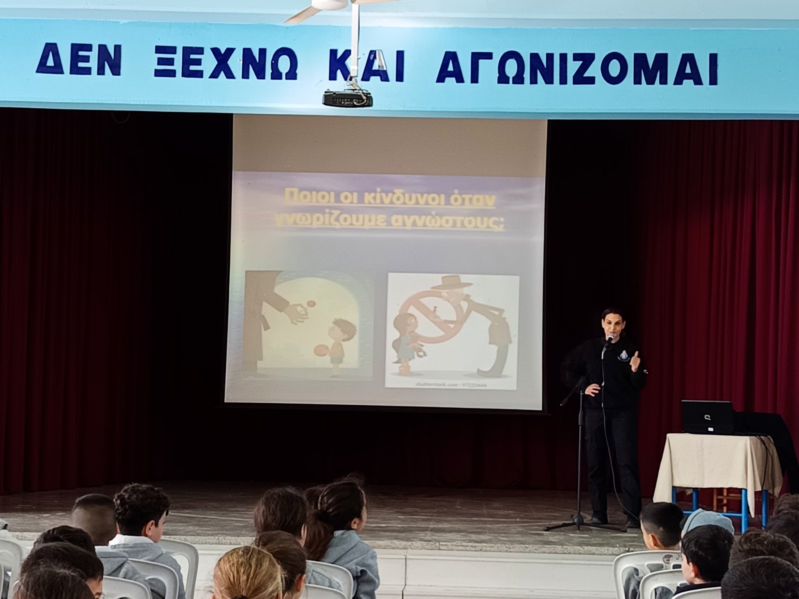 Τα παιδιά είχαν την ευκαιρία να μάθουν και να συζητήσουν για τους διάφορους κινδύνους που μπορεί να συναντήσουν στο Διαδίκτυο από την κ. Λουκία Χαραλάμπους, αστυνομικό στην Αστυνομία Βάσεων Ανρωτηρίου.