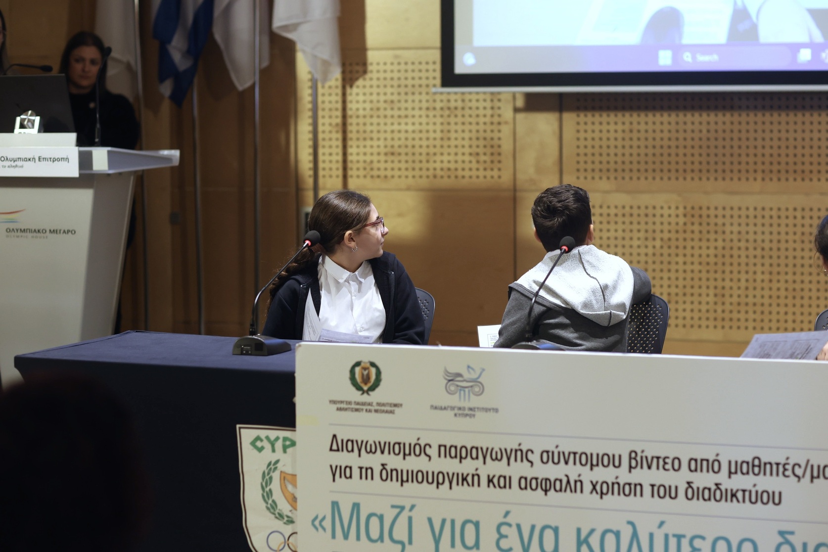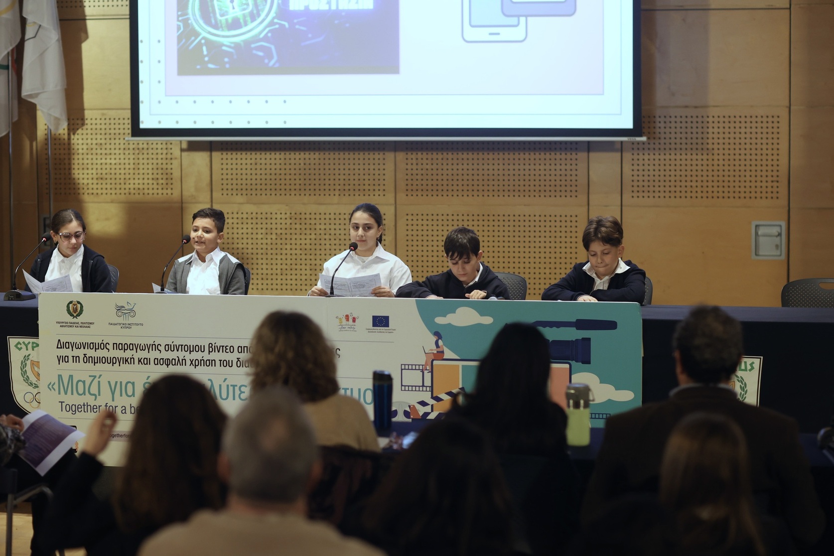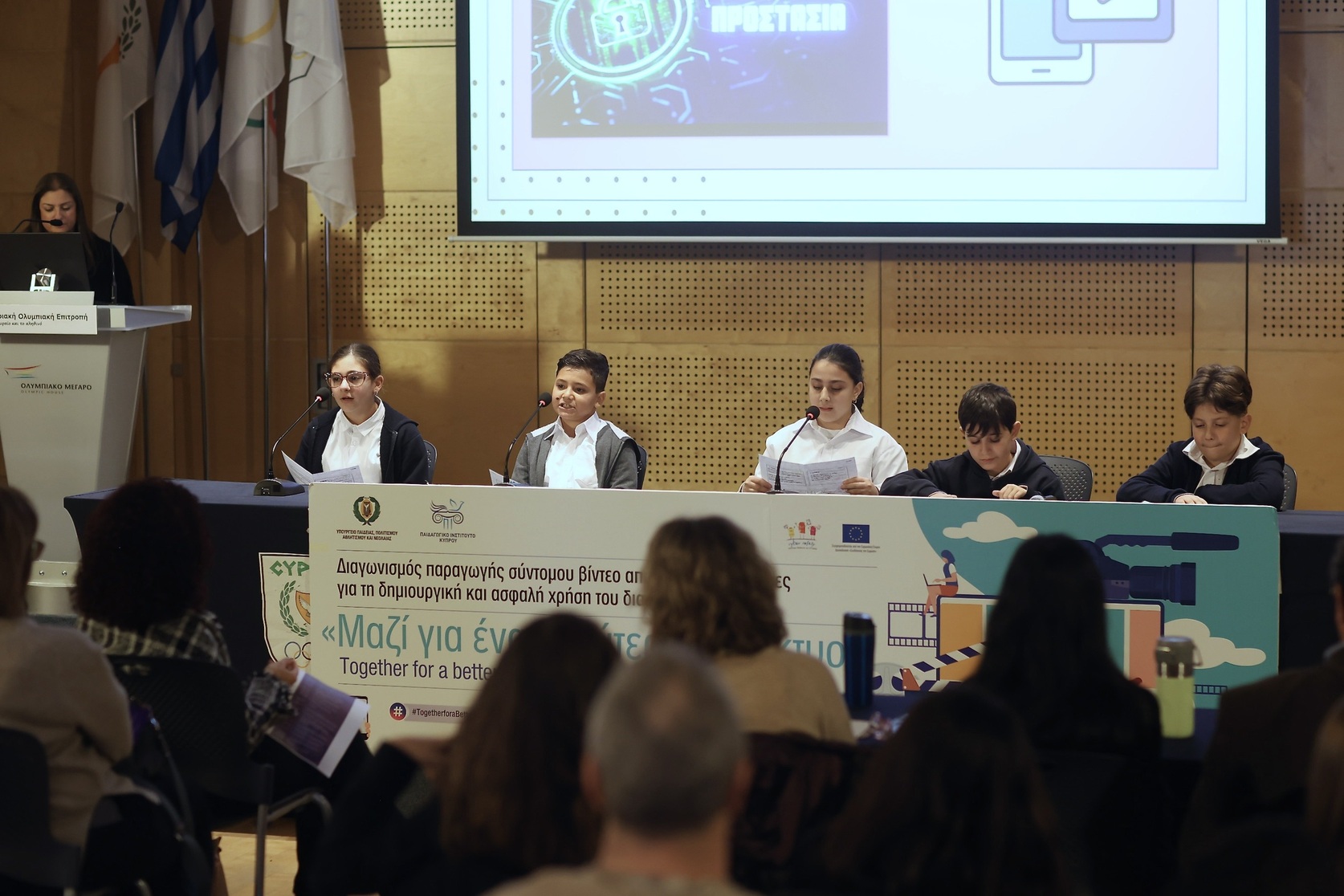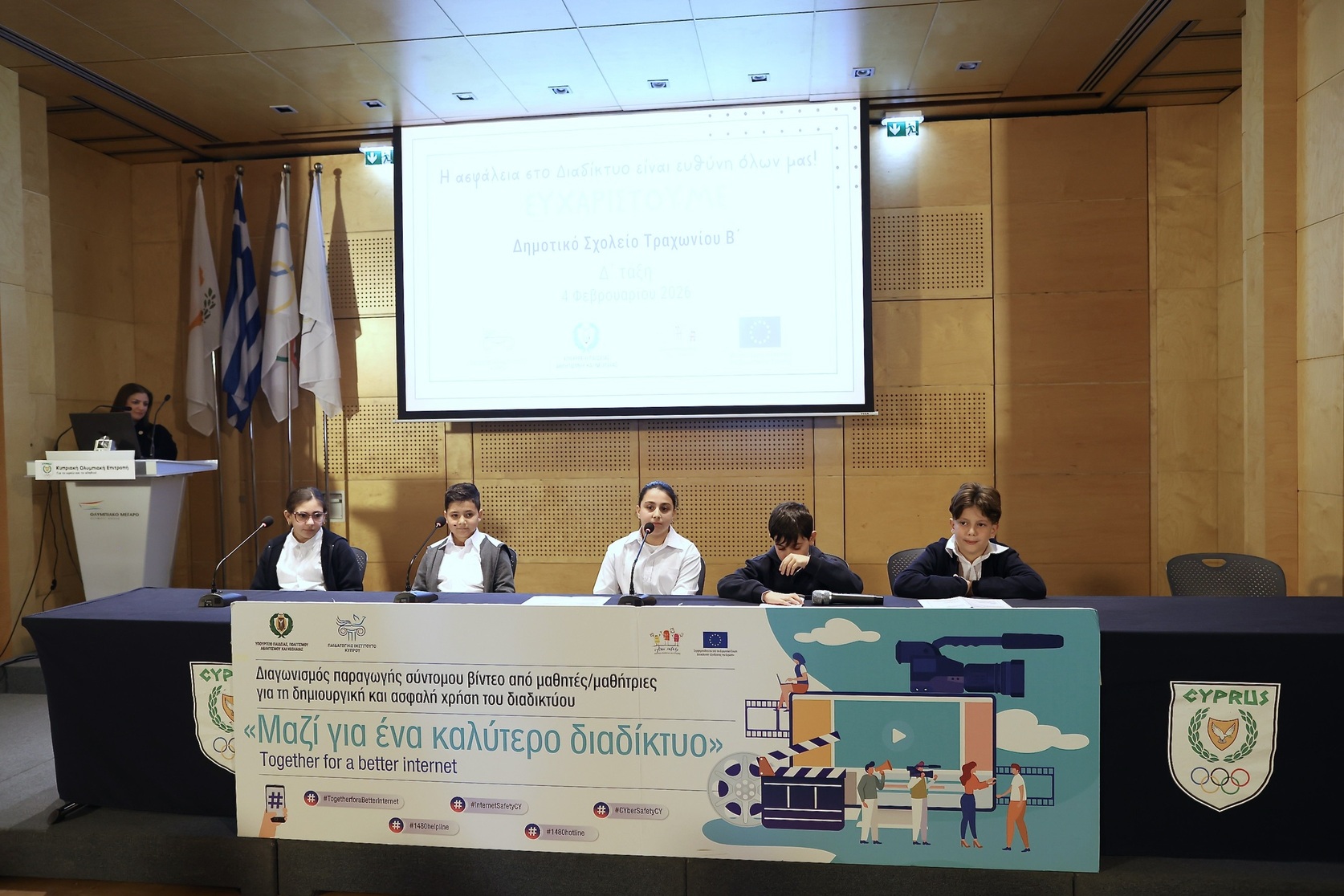 Η συμμετοχή του Δημοτικού Σχολείου Τραχωνίου Β΄ με τίτλο «Αποστολή: Προστασία» στον Διαγωνισμό «Παραγωγή Βίντεο για την Ασφαλή και Δημιουργική Χρήση του Διαδικτύου 2025-2026» πήρε ΕΠΑΙΝΟ στην εκδήλωση που διοργάνωσε το Παιδαγωγικό Ινστιτούτο Κύπρου στο Ολυμπιακό Μέγαρο στη Λευκωσία.